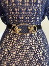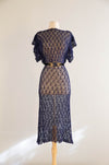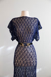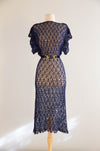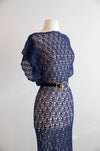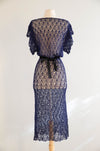 Stunning 1930's Sapphire Blue Hand-Crocheted Dress with Matching Belt / SM