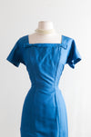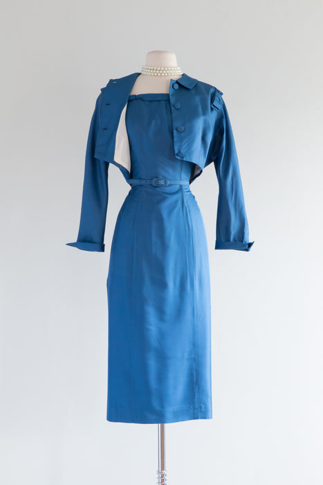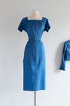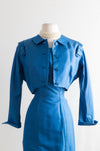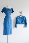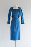 Cerulean Blue 1950's Wiggle Dress and Jacket By Abe Schrader / Waist 30