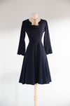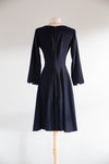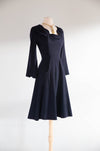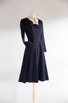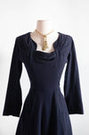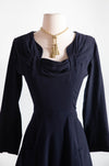 Elegant 1940's Demi Couture Jacques Fath Navy Blue Wool Dress With Pockets / S