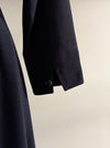 This striking 1940s dress by Jacques Fath is an exceptional example of Paris couture craftsmanship. Cut in a soft navy blue wool, the fabric offers a beautiful balance of structure and fluidity, allowing the silhouette to hold its shape while draping elegantly on the body. The design features the era’s signature strong shoulders and a softly defined waist, creating a confident, flattering line.