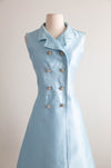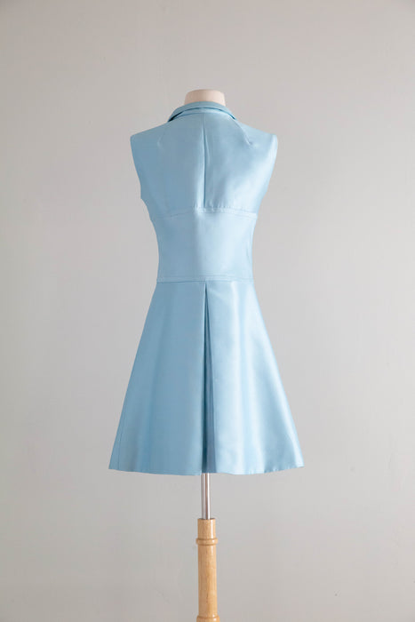 Iconic 1960's Tiffany Blue Shantung Silk Cocktail Dress By Pat Sandler / M