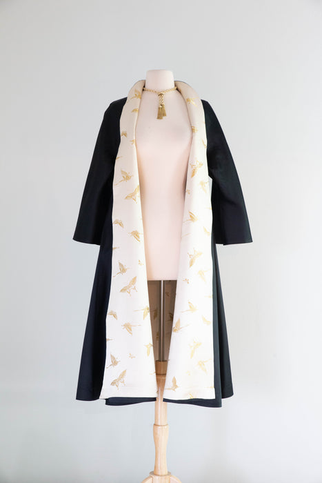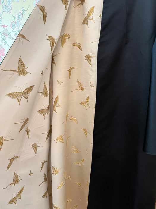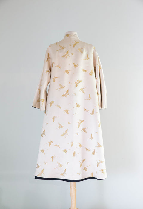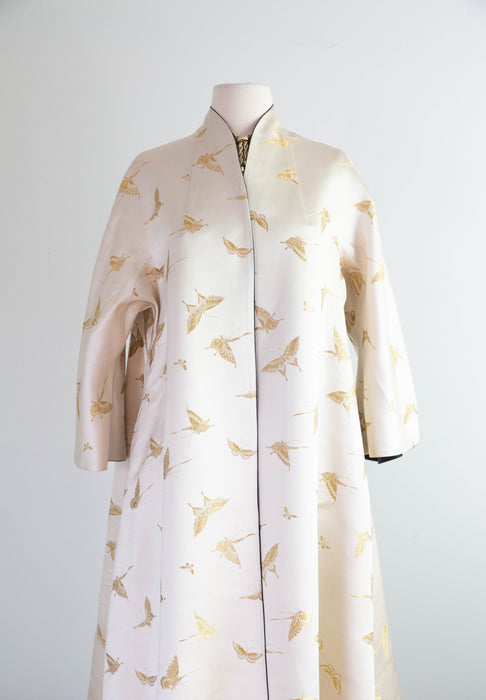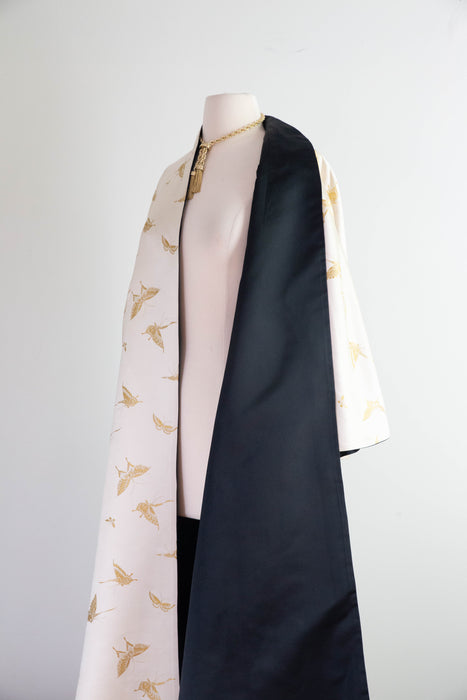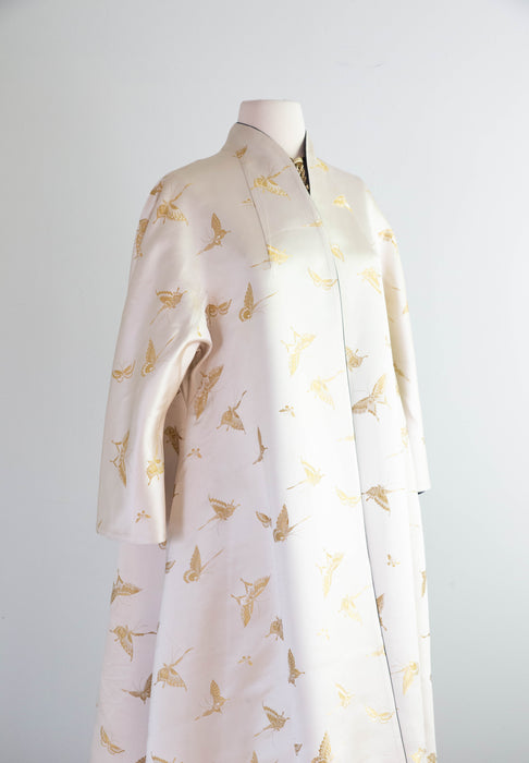 Gorgeous 1950's Chinese Silk Reversible Evening Coat With Gold Butterflys / M
