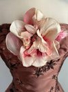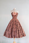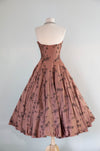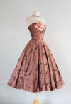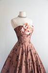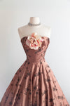 Stunning 1950's Rosewood Embroidered Satin Strapless Evening Dress / Small