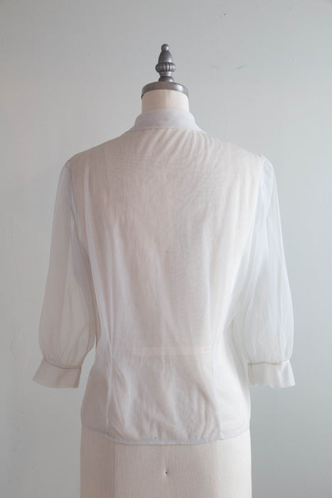 The Prettiest 1950's Sheer Blue Nylon Blouse / SM