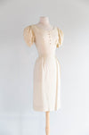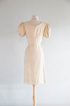 Darling 1950's Creampuff Ivory Wiggle Dress With Embroidered Sleeves / M