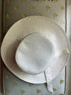 Chic 1970's wide bring ivory cloth linen hat. Gross grain ribbon lining around the band. Matches our Sonia Rykiel linen pants perfectly! Ready to wear!