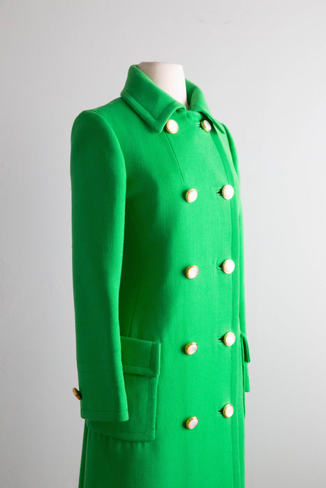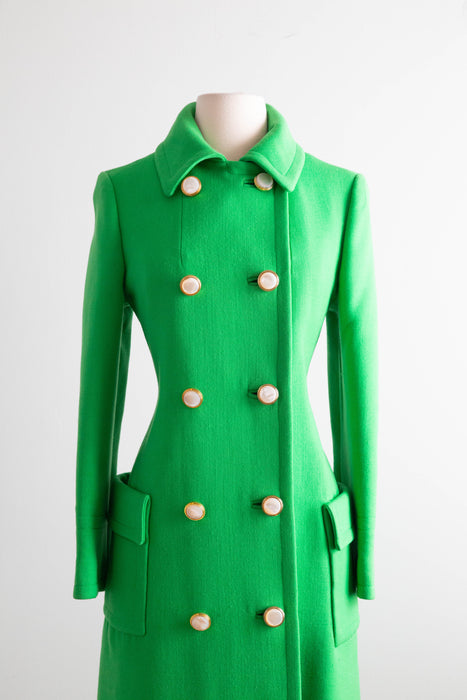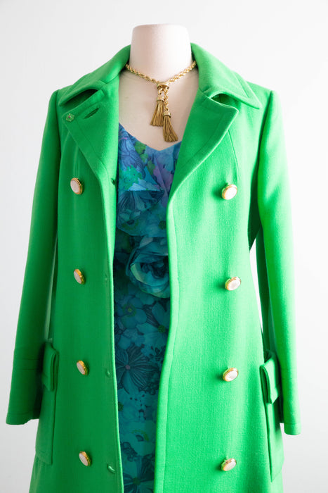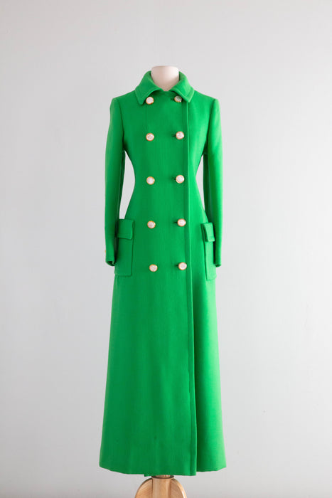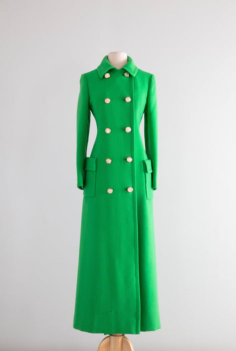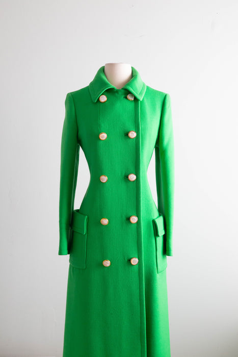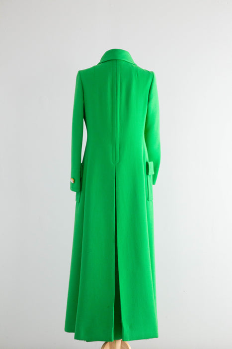Fabulous 1960's I.Magnin Wool Maxi Coat In Spring Green / SM