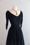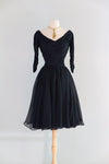Iconic 1950's Ceil Chapman Midnight Blue Silk Chiffon Cocktail Dress / M