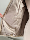 Details include a chunky zip-front closure, a softly rolled Peter Pan collar, and subtly puffed sleeves. Side pockets lined in matching velvet. Fully lined in champagne-toned satin with a delicate monogram, the interior reflects the quality and custom craftsmanship of a fine mid-century furrier. A timeless, elegant piece that transitions effortlessly from day to evening. In excellent condition, clean and ready to wear.
