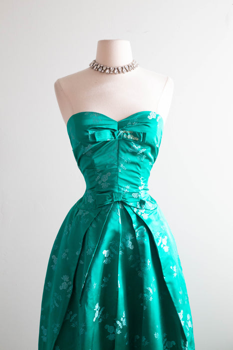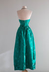 Stunning 1950's Peacock Green Silk Evening Dress With Tulip Skirt / Small