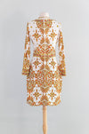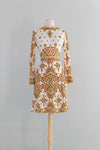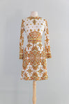 Fabulous 1970's Baroque Border Print Jersey Print Dress From Saks Fifth Ave / M