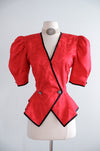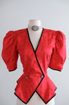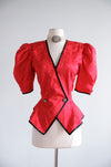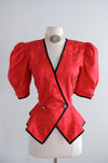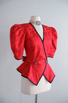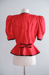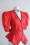 Vintage 1980's Romantic Red Peplum Blouse by Point of View / M