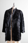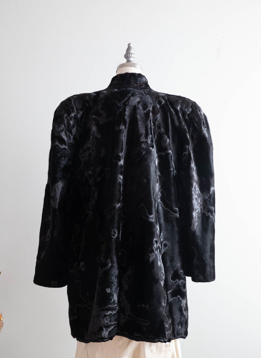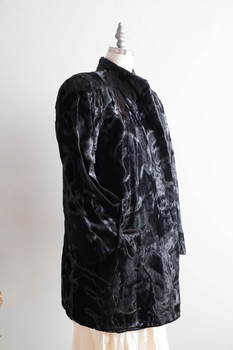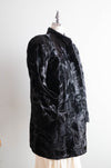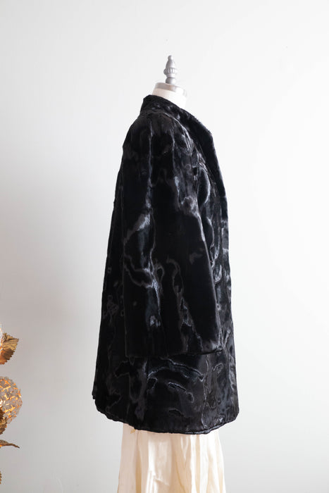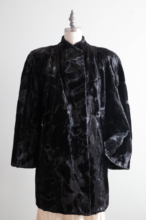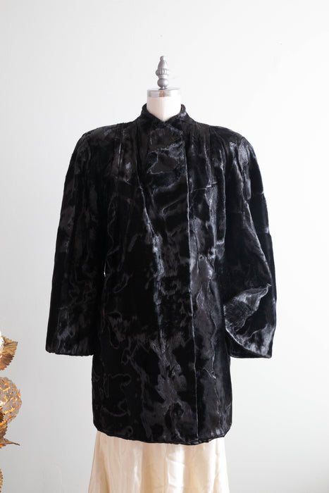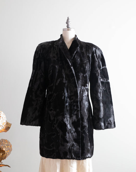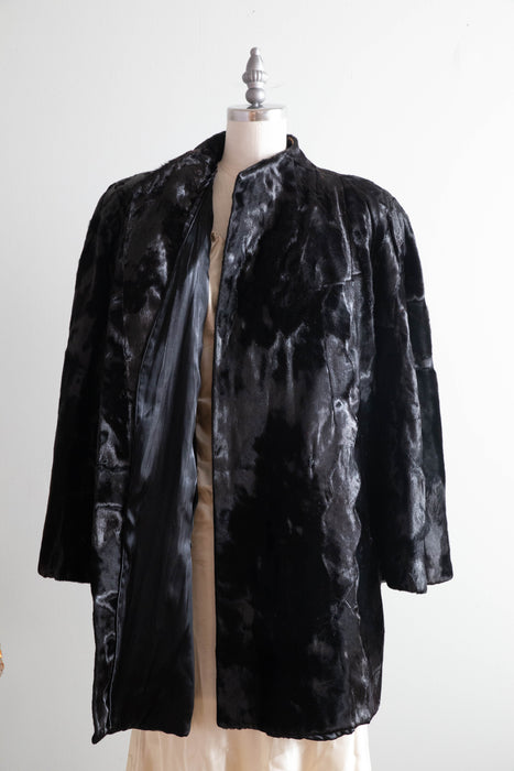 Dramatic 1940's Glossy Obsidian Black Fur Swing Coat With Pockets / SM