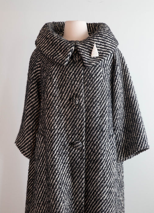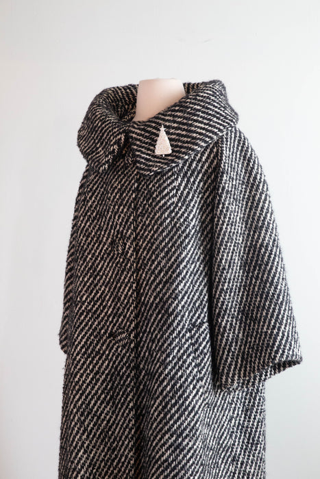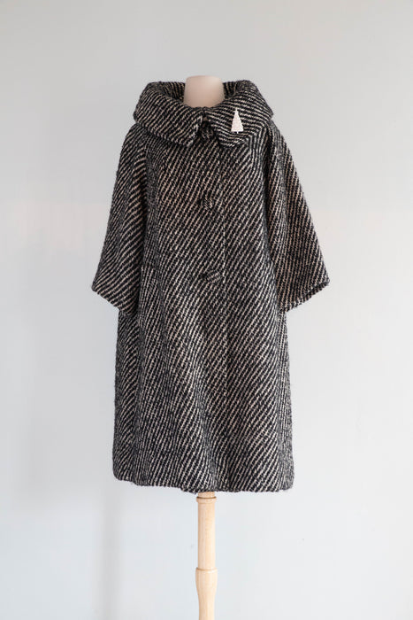 Fabulous 1960's Zebra Striped Black & White Lilli Ann Swing Coat / ML