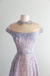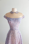 Impressionist 1950's Peggy Hunt Illusion Bodice Cotton Cocktail Dress / SM