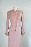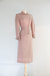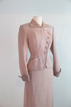Impeccable Late 1940's Rose Taupe Wool Ladies Two Piece Suit by Natalie Green / XS