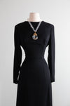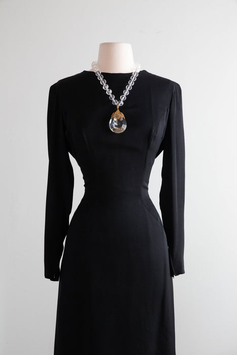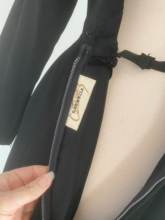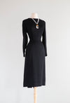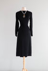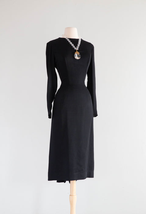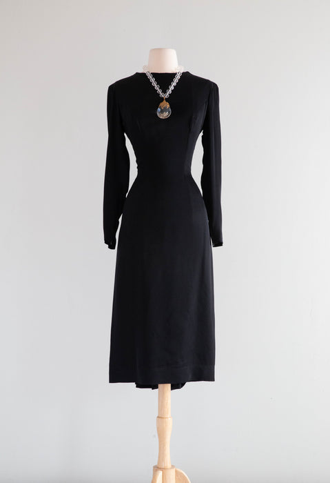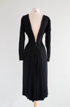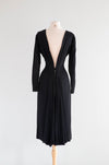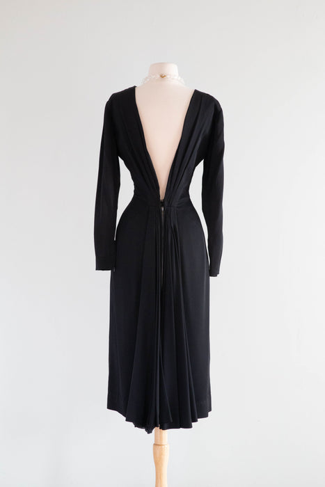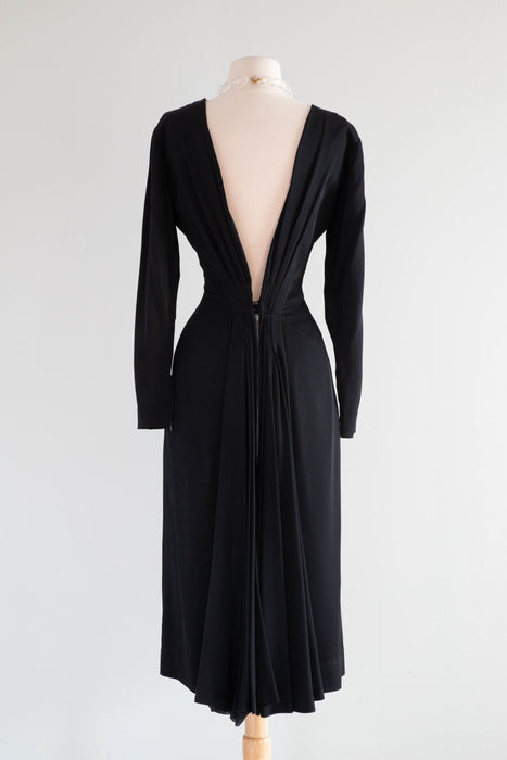 Sublime 1950's Estevez Black Silk Cocktail Dress With Plunging Low Back / SM