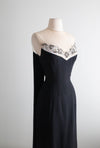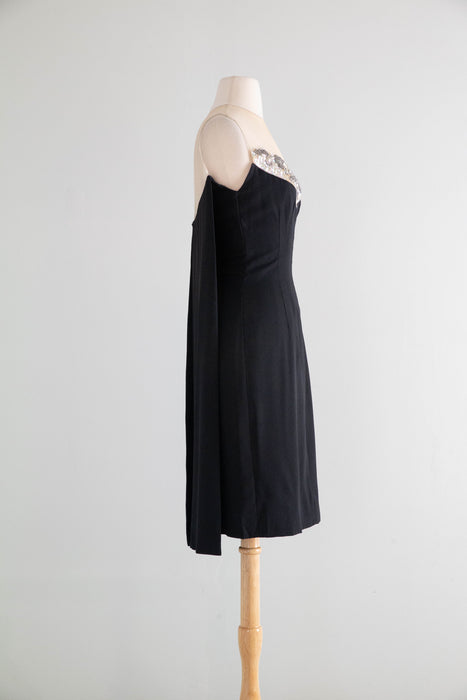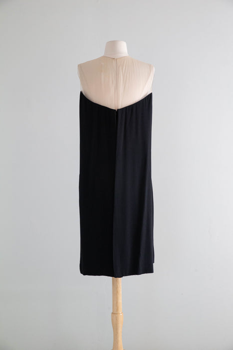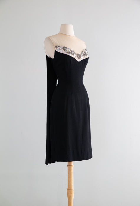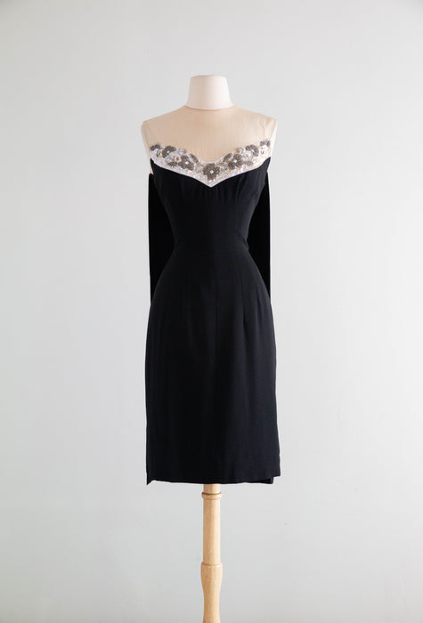 Iconic Late 1950's Little Black Dress With Illusion Neckline by Mr. Blackwell / S