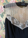 Condition: overall excellent, a small tear in the back of the illusion fabric that is only noticeable upon close inspection. See close up pictures. Wears and presents beautifully. freshly dry cleaned and ready to wear. Minor signs of wear typical of age.