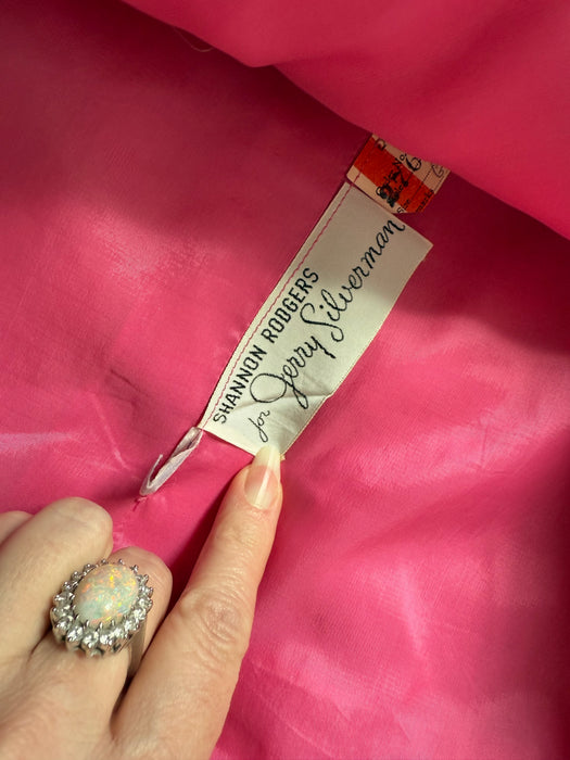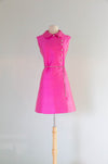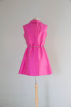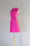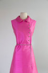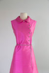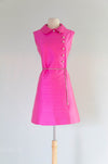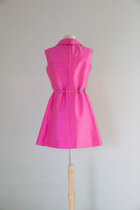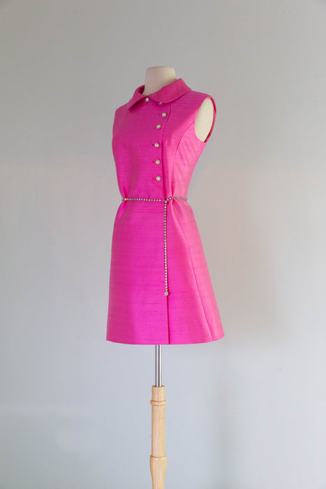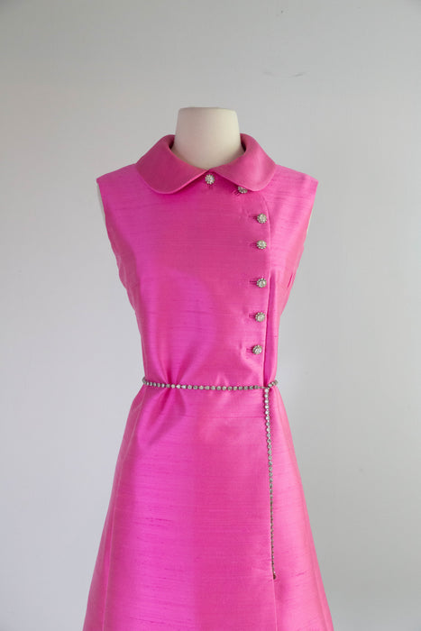 Absolutely Fabulous 1960's HOT PINK Silk Cocktail Dress With Rhinestone Belt By Jerry Silverman / M