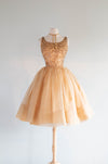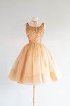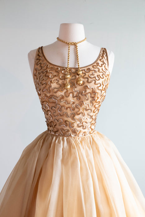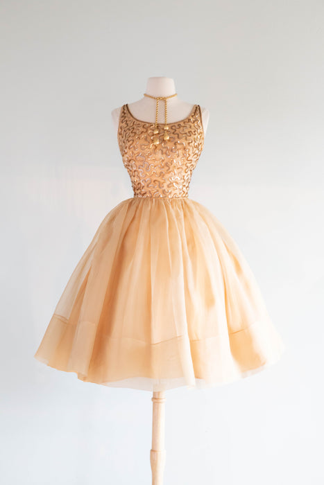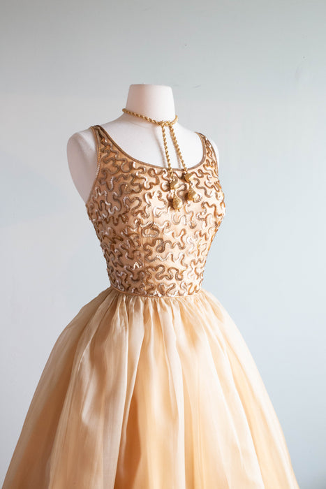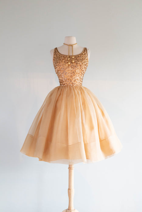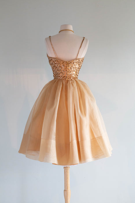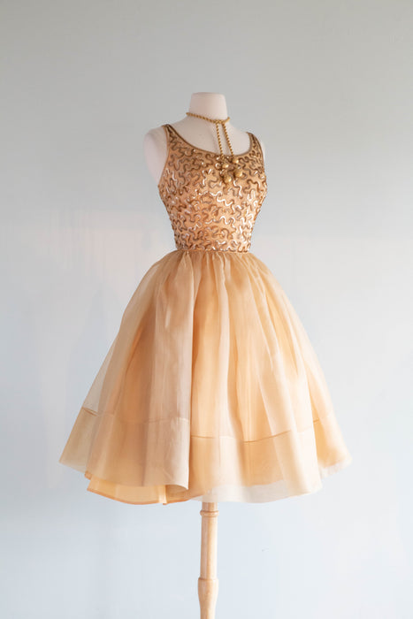 Stunning 1950's Gold Sequined Cupcake Party Dress By Jr. Theme / Small
