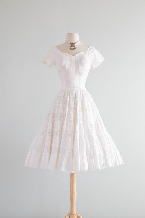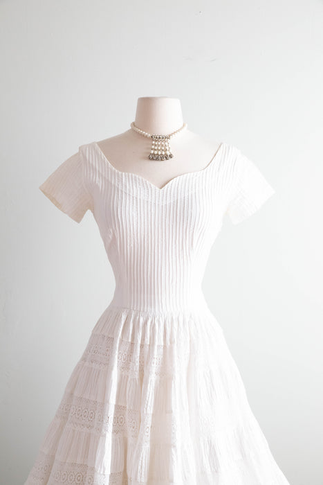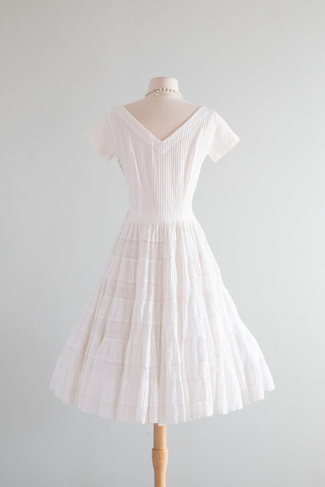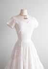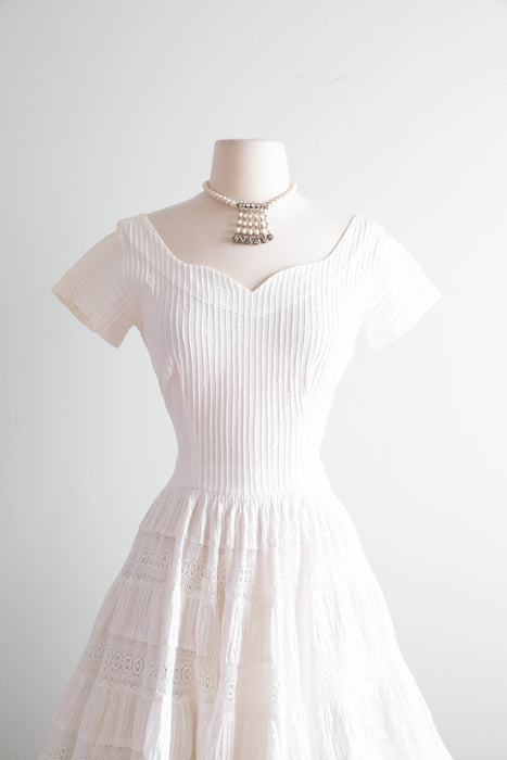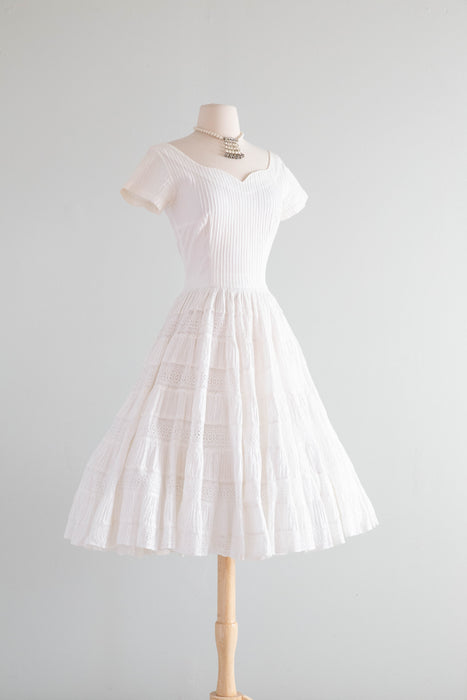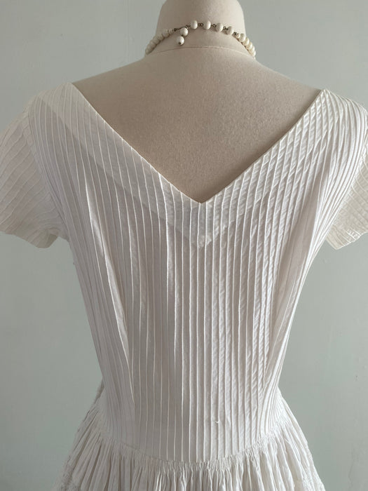 Stunning 1950's Tachi Castillo White Cotton Pleated Party Dress / M