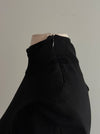Stunning 1990's era black jersey knit evening gown by fashion legend Jean Paul Gaultier. Composed of a fine silk or rayon jersey, this sleek gown features a high mock turtleneck and ruched half length sleeves. An invisible zipper up the side of the neck. Stretches to fit. Beautifully constructed and made in Italy. In excellent condition, freshly cleaned and ready to wear.