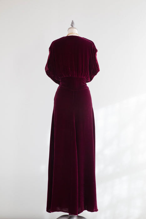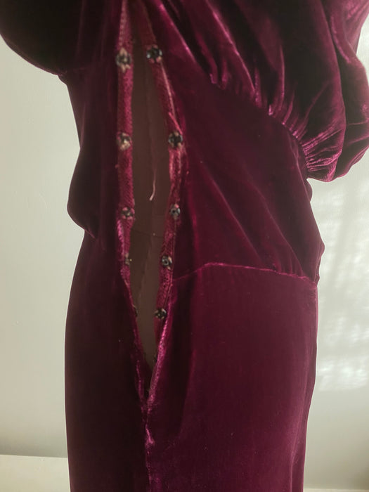 Gorgeous 1930's Silk Velvet Evening Gown In Deep Fuchsia / M