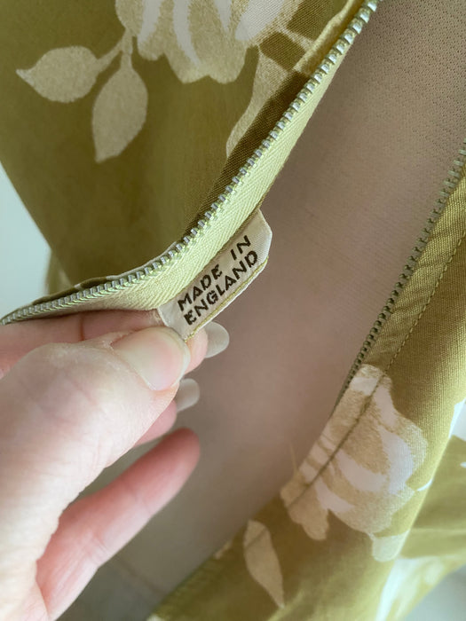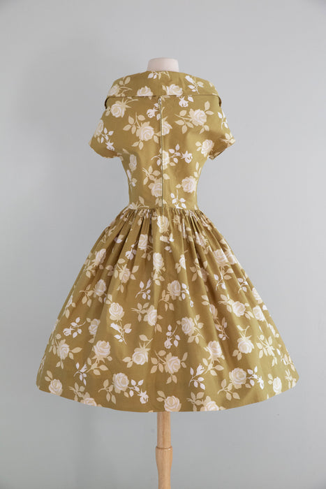 Iconic 1950's Green Rose Print Cotton Dress With Shawl Collar By Horrockses / SM