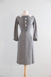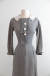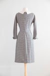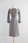 Classic 1950’s Window Pane Wool Crepe Day Dress by Designer Irene / Small