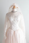 Exquisite 1950's Ballet Pink Wedding Gown & Veil From Priscilla of Boston / S