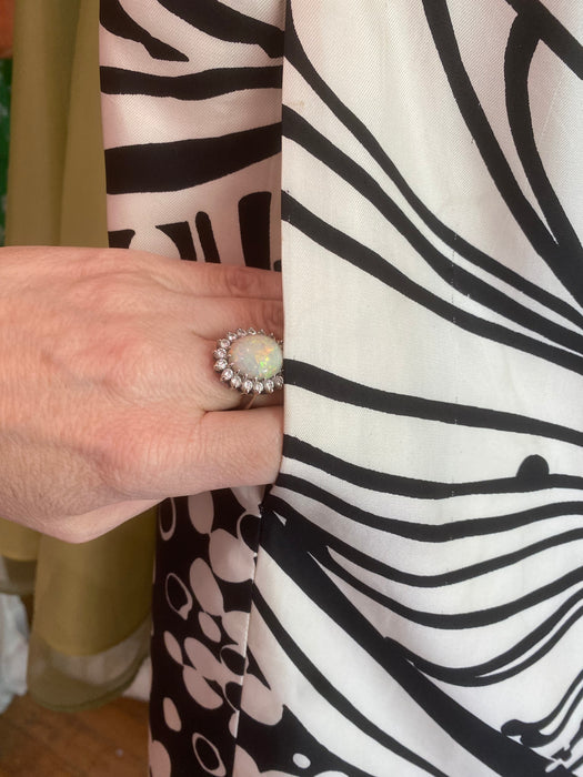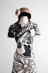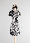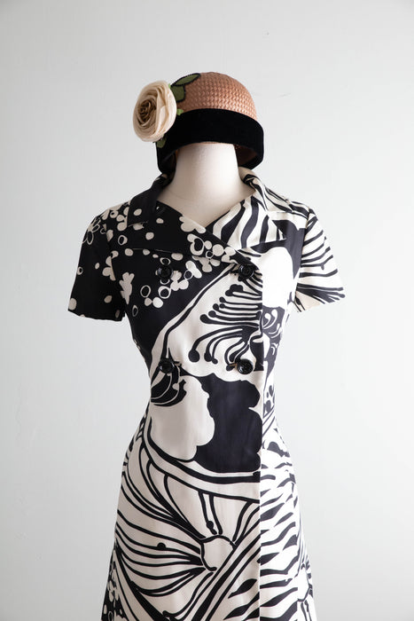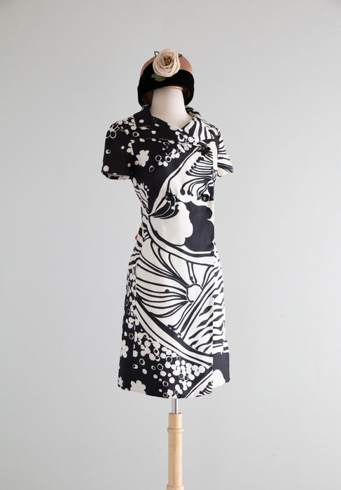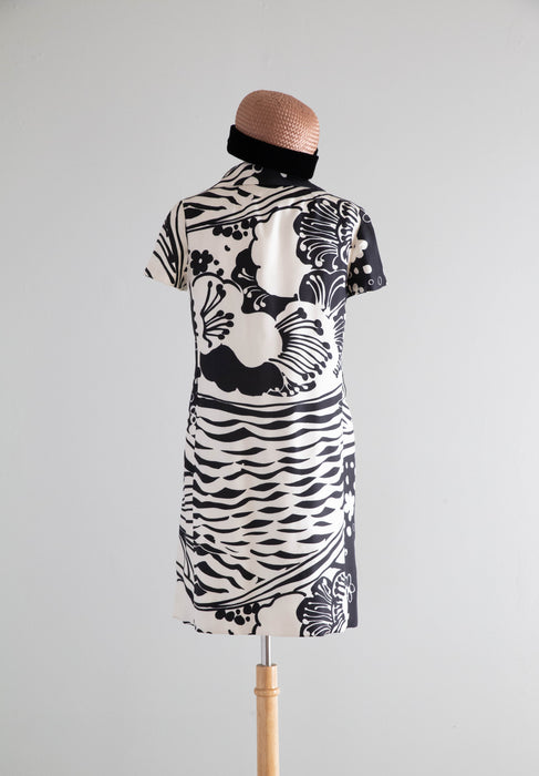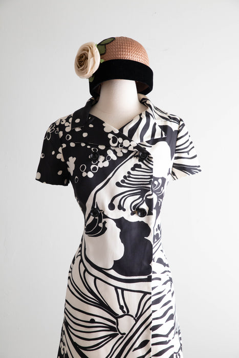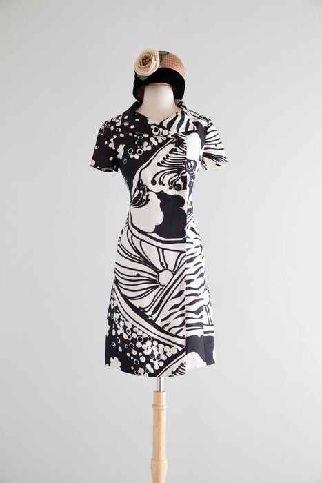 Fab 1960's Black & White Abstract Silk Dress With Pockets / M