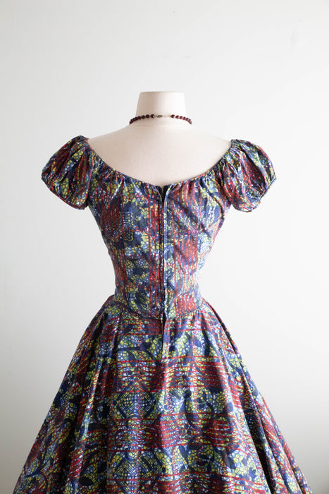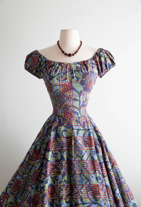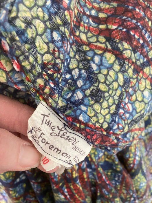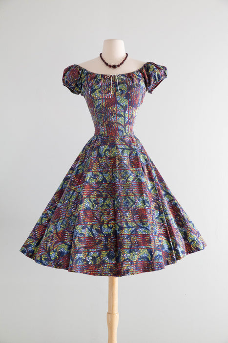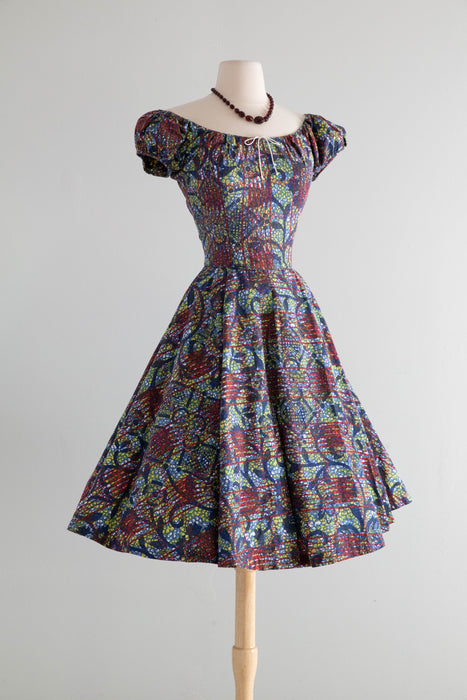 Iconic 1950's Batik Print Cotton Summer Dress By Designer Tina Leser / M