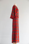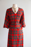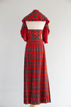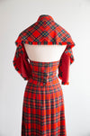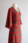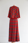 Fabulous 1970's Wool Tartan Plaid "Holiday Hostess With The Mostess" Two Piece Set / M