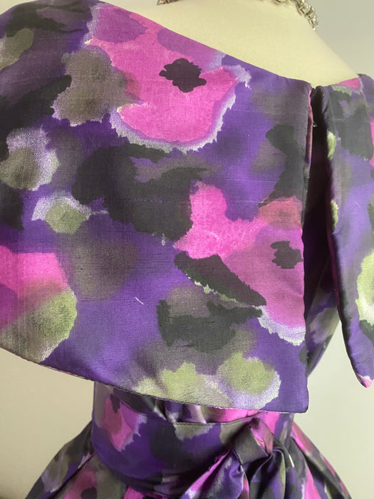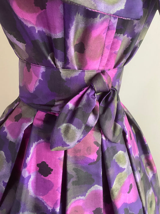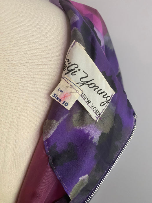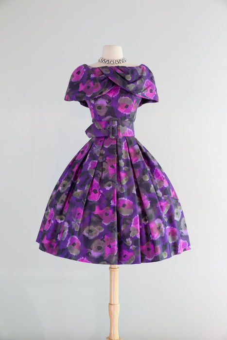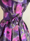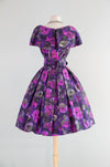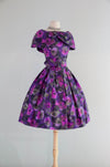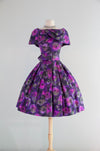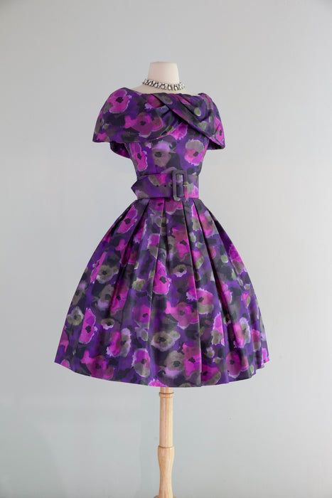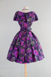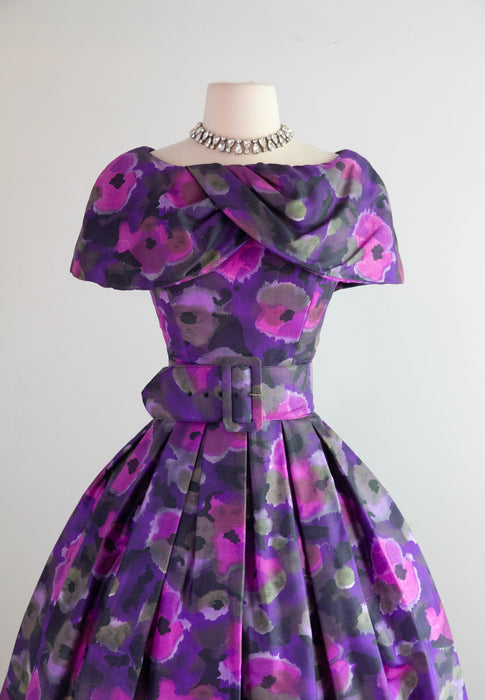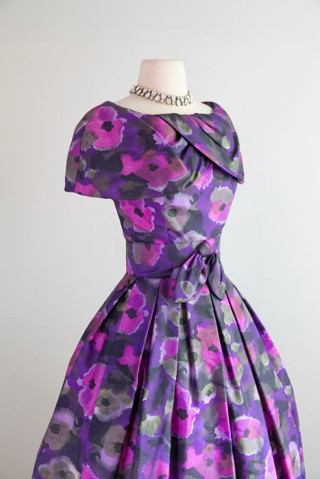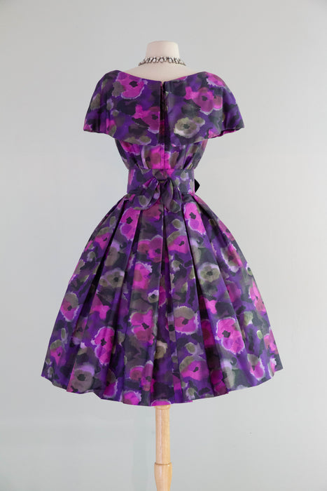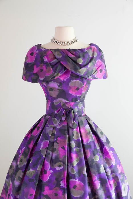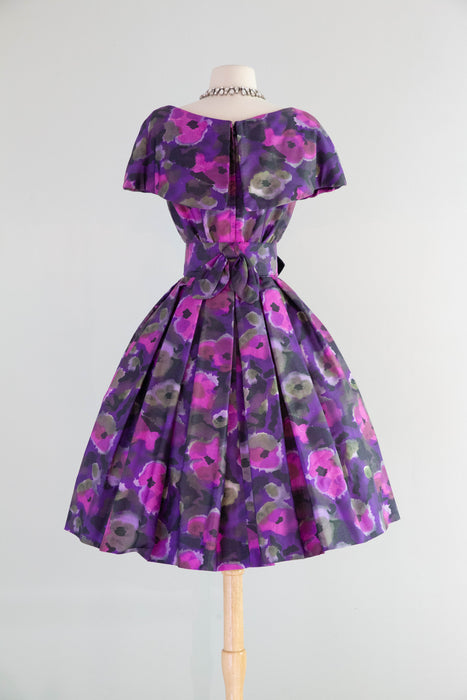 Sophisticated 1950's Violet Silk Floral Print Party Dress By Gigi Young / Small