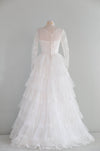 Enchanting 1950's Floral Chantilly Lace Wedding Gown / Small