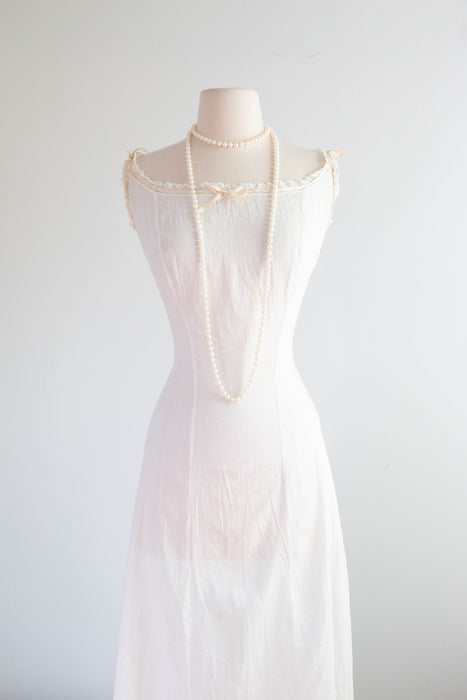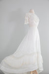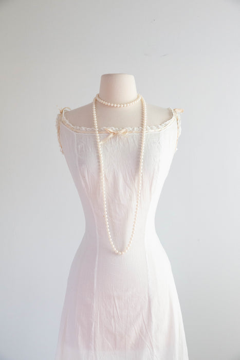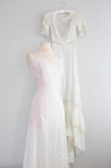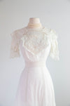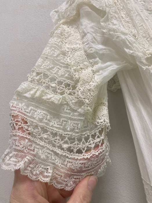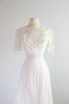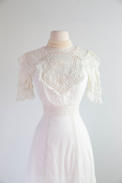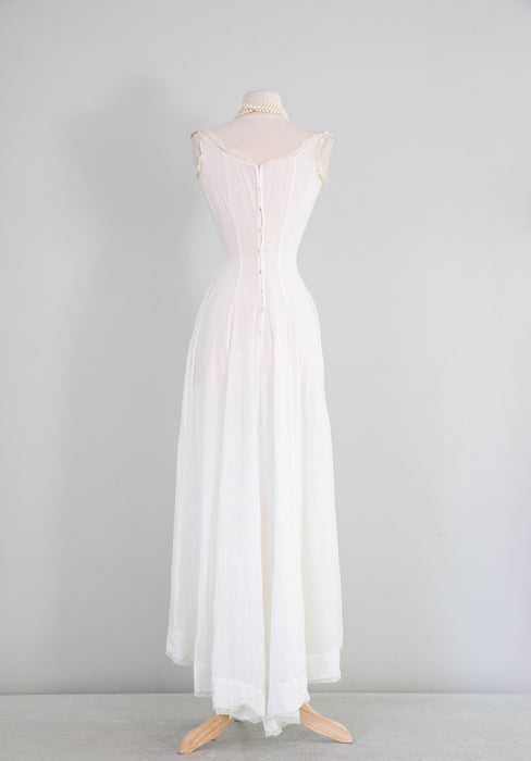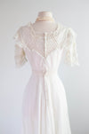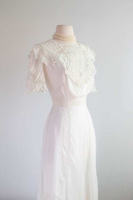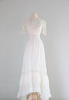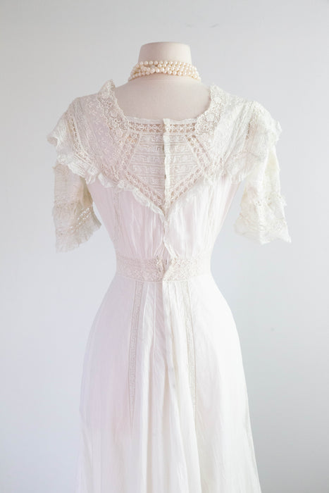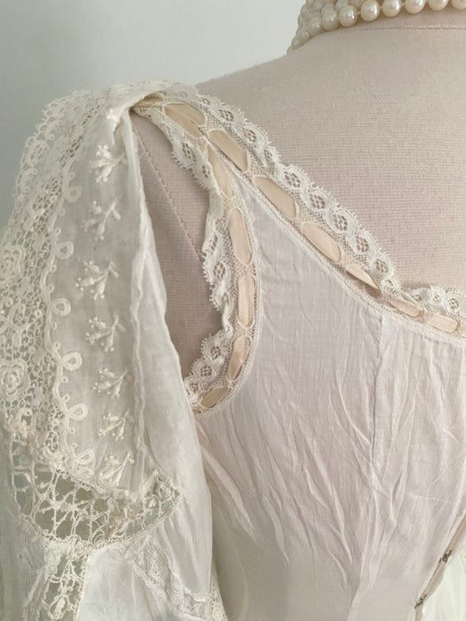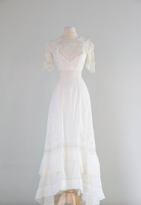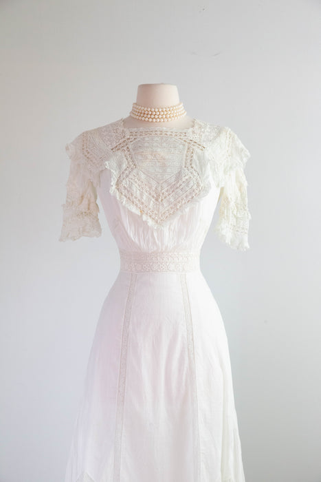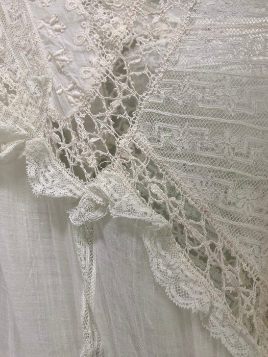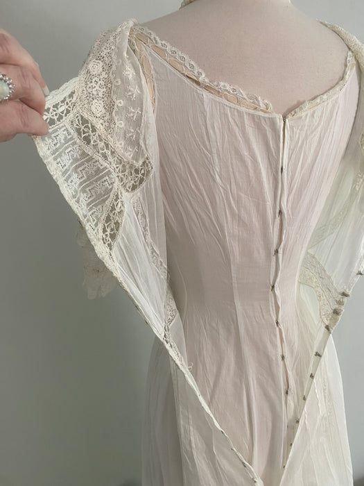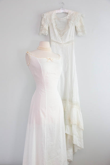 Exquisite 1900's Antique Edwardian Wedding Dress & Slip White Cotton Batiste /XXS