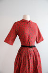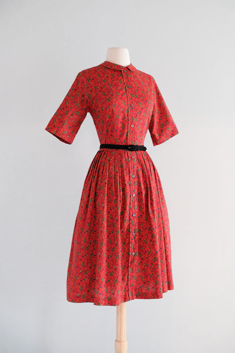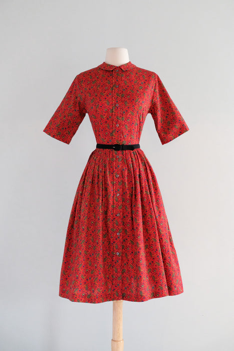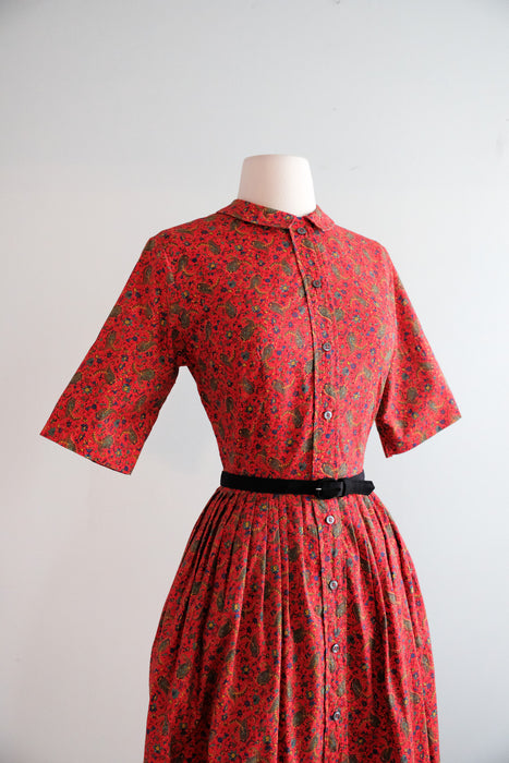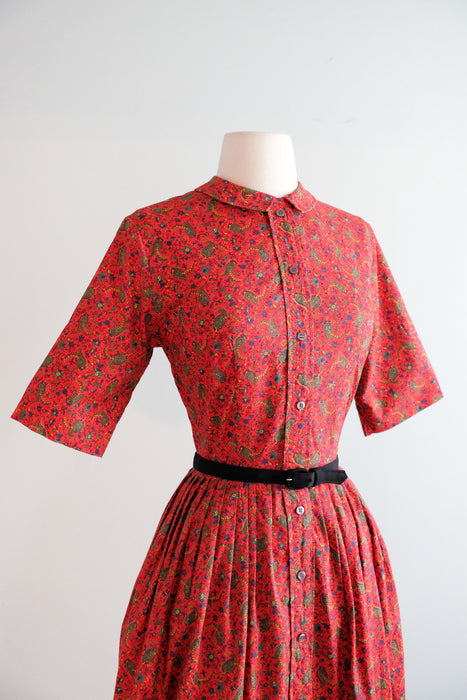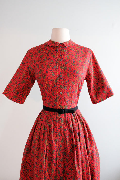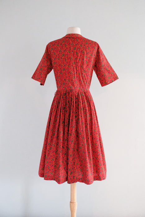 Vintage 1950’s Red Paisley Printed Cotton Day Dress by Best & Co. / SM