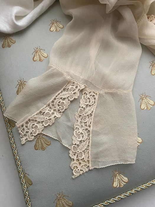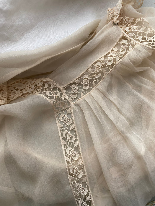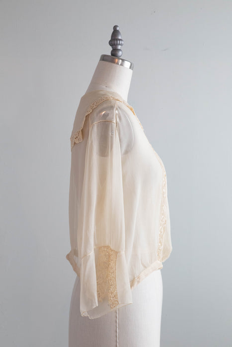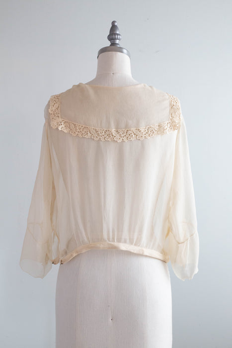 Ethereal 1920's Silk Chiffon & Lace Blouse With Sailor Collar / M