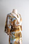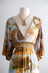 Vintage 1970's Psychedelic Photo Collage Desert Wildflower Print Hostess Gown / M