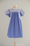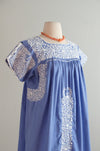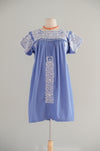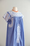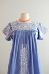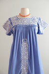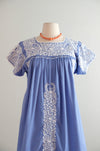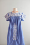 Vintage Hand Embroidered Periwinkle Cotton Mexican Huipil Style Mini Dress or Tunic / ML