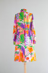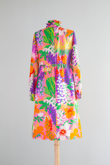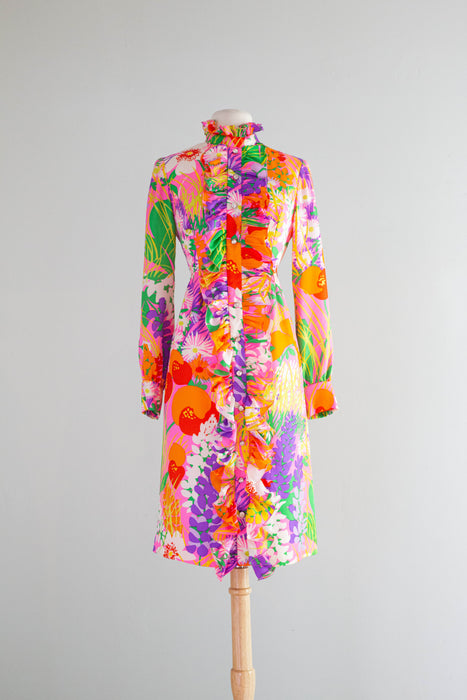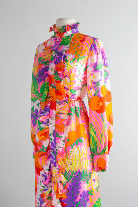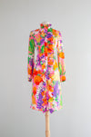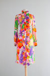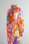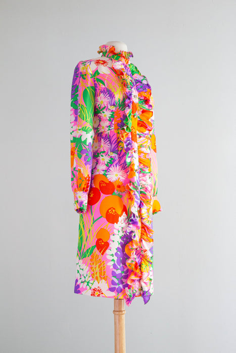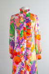 JOYFUL 1960's Colorful Silk Floral Occasion Dress By Brenner Couture