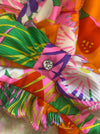 Indulge in luxury with the JOYFUL 1960's Colorful Silk Floral Occasion Dress. The vibrant floral pattern, made from premium silk, elevates this dress to a work of art. This Brenner Couture piece captures the spirit of the 1960's with a modern, sophisticated twist. Make a statement at any occasion. Zips up the back and is lined in cotton. Freshly dry cleaned and ready to wear.Ā