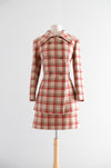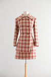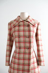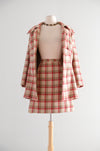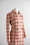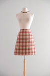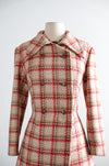 Vintage 1960's Red & Camel Plaid Wool Two Piece Suit / S