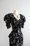 Vintage 1980's Black & White Peplum Dress by Karen Alexander / Medium