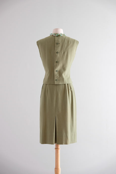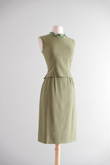 Vintage 1960's Matcha Wool Two Piece Set / XS