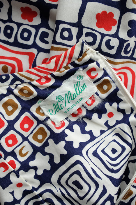 Vintage 1960's Mod Batik Style Shift Dress by McMullen / M
