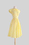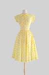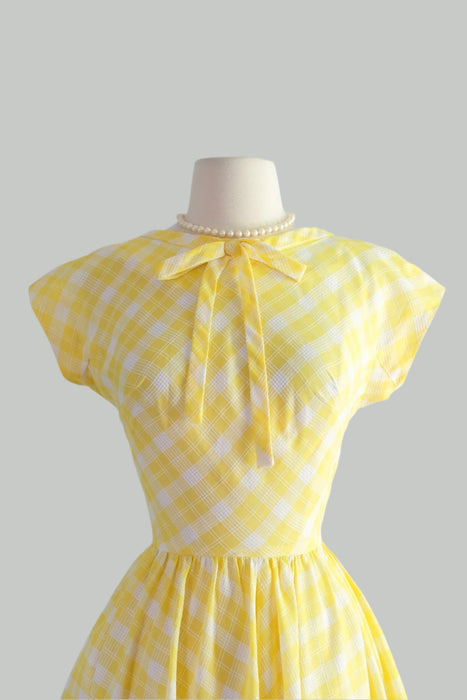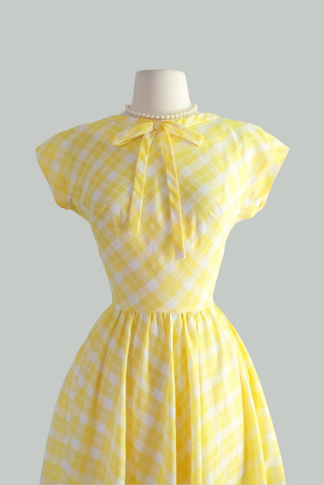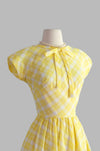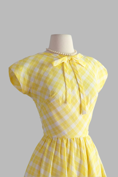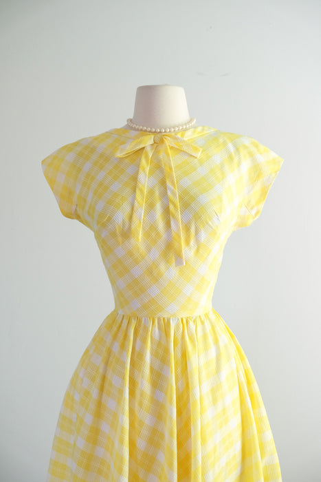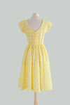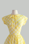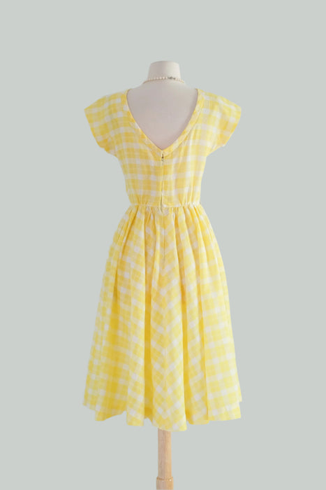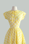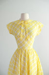 Vintage 1950's Yellow & Ivory Plaid Cotton Dress / XS