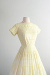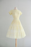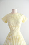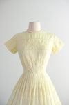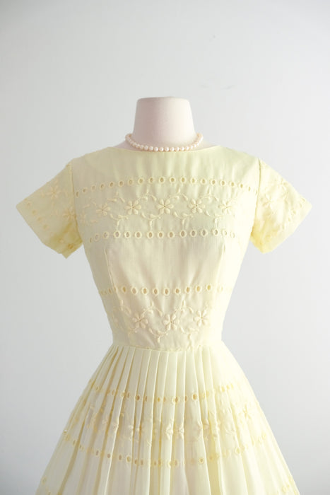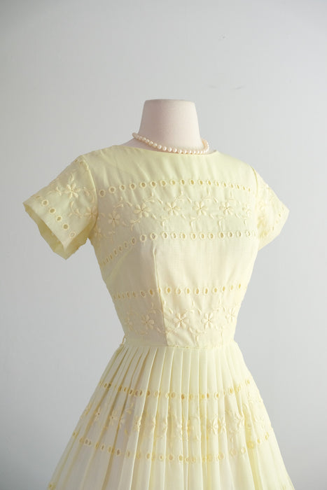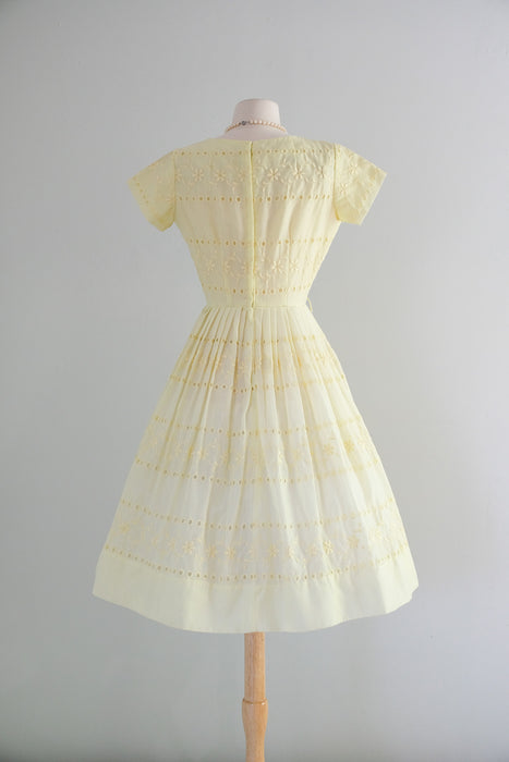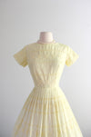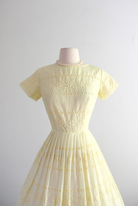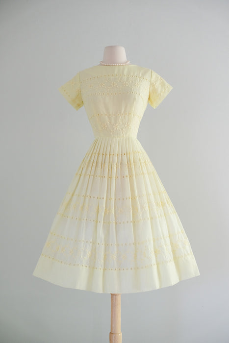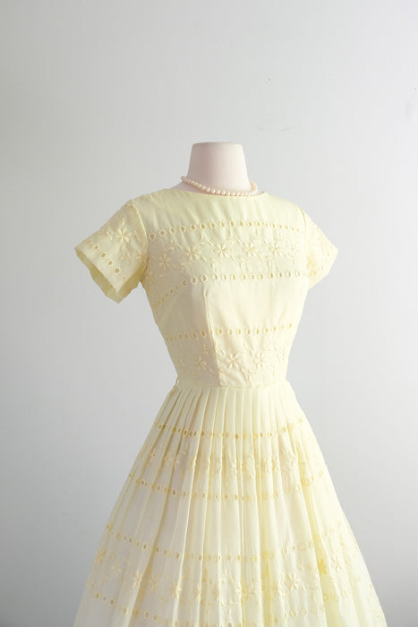 Vintage 1950's Pale Yellow Eyelet Cotton Dress by Henry Rosenfeld / XS