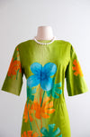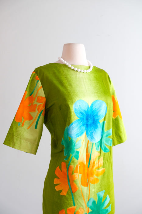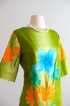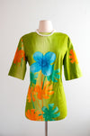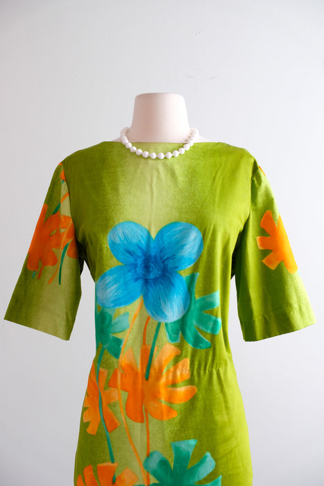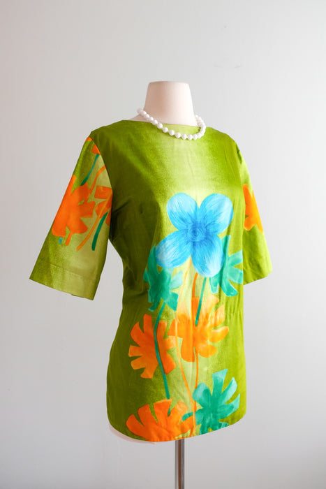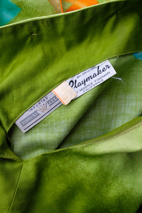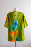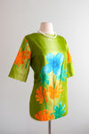 Vintage 1960's Green Watercolor Floral Hawaiian Shirt by Mannie Fineman / M